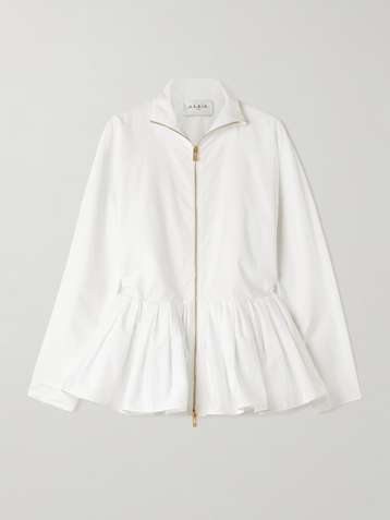 Appliquéd leather-trimmed distressed cotton-twill jacket