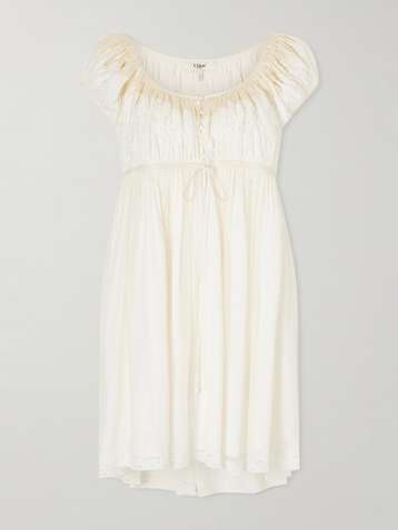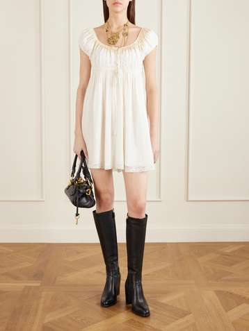 Lace-trimmed silk-crepon mini dress