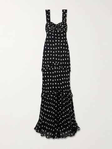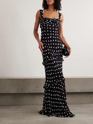 Selma ruched ruffled polka-dot crepe de chine maxi dress