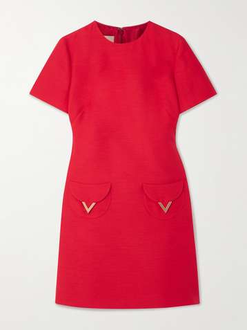 Satin-trimmed wool and silk-blend dupioni mini dress