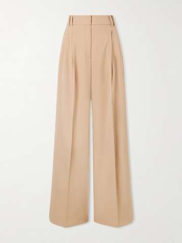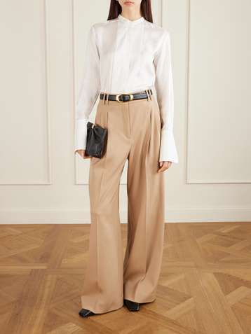 Ruffled lace-trimmed silk-satin wide-leg pants