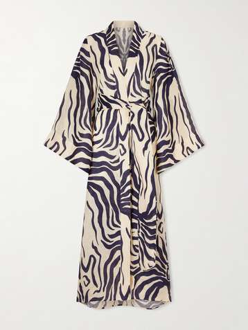 Holi belted printed silk crepe de chine coverup