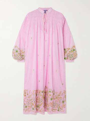 Guise tasseled pintucked embroidered cotton-voile midi dress