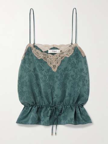 Lace-trimmed silk-jacquard camisole
