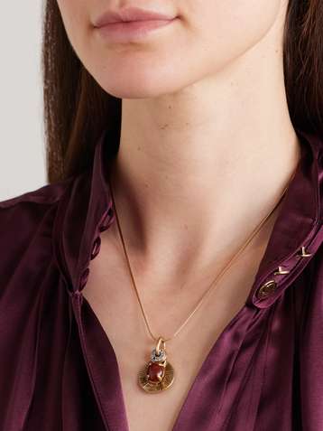 Soli Gato gold-plated, crystal and rhodonite necklace