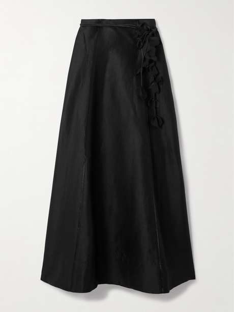 Designed as a set with the matching top, Aje's 'Camille' skirt is cut from linen-blend in a flattering A-line maxi shape. The slim belt is decorated with delicate petals, which add dimension and texture and look so pretty as they move with your every step.