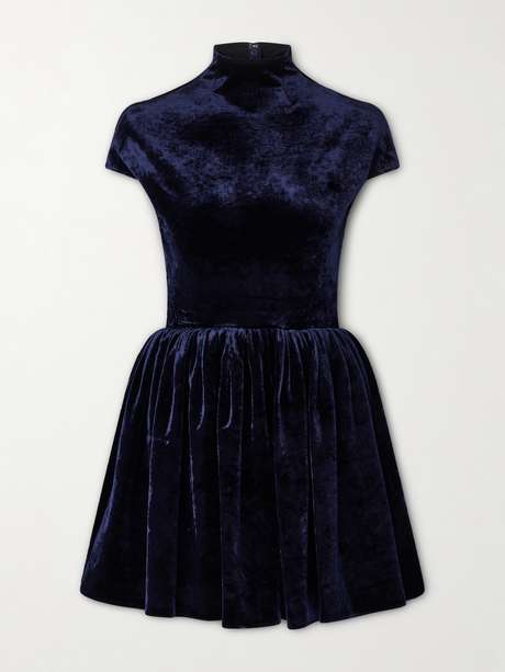 Alaïa's babydoll dress is a contemporary take on the romantic silhouette. Cut from soft velvet, it's fitted around the bodice and falls to a full, gathered skirt. The high neckline lends an elegant finish, balancing the mini length.