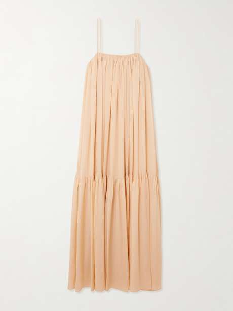CHLOÉ Ruched tiered silk maxi dress