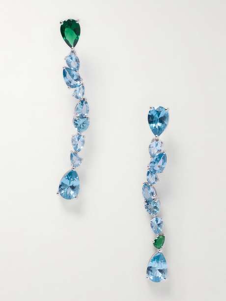 Completedworks' Spring '26 collection is inspired by the forces of nature carving out landscapes over time. Handcrafted from recycled silver plated in rhodium, these earrings are set with synthetic spinel and emerald cubic zirconia in various cuts.