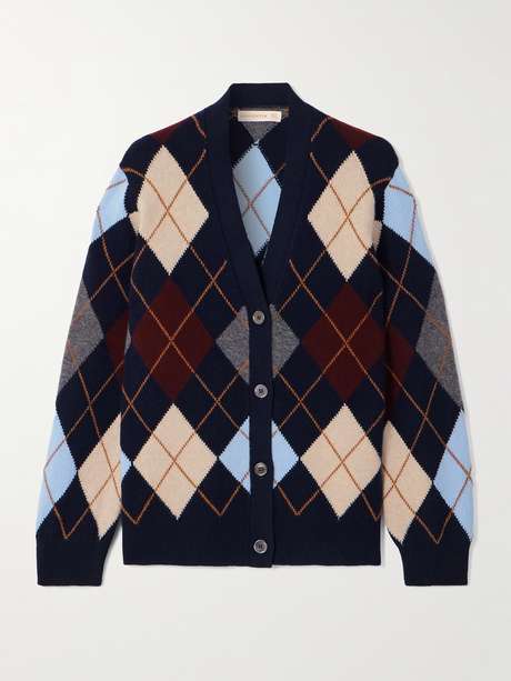 Buffy Reid is influenced by her father's lifelong work with knitwear, hence the name &Daughter. This 'Ava' cardigan is knitted with a classic argyle pattern from Geelong wool, which has been spun locally in Scotland. It has a fully fashioned construction, meaning each piece is individually knitted and linked together by hand.