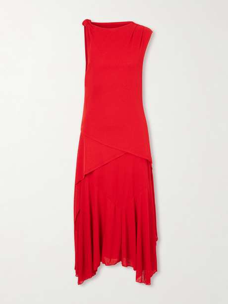 GANNI’s 'Marl' midi dress captures the label’s playful approach to modern femininity. Made from airy gauze, it's draped from a knotted shoulder and falls to a softly ruffled skirt with an asymmetric hem.