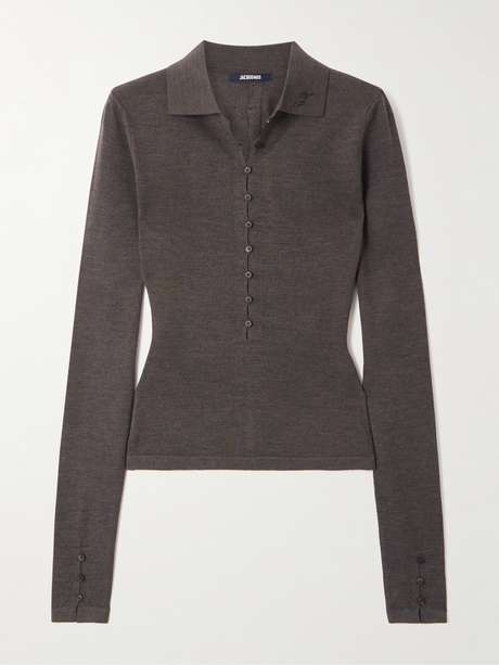 Jacquemus' reimagines the classic polo sweater with a longer placket and buttons at the cuffs, too. It's made from a wool-blend and has a close fit. The collar is embroidered with the tonal moniker.