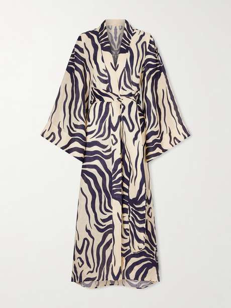 Based in Cali, Colombia, Johanna Ortiz is committed to the local community and works to preserve craftsmanship and encourage creativity. Handmade from certified linen, this 'Boa Whisper' coverup is cut with flared sleeves and printed with a zebra-print motif. The wide sash belt enhances its kimono-inspired shape.