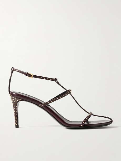 KHAITE's sandals are named for their 'Cage'-like shape that subtly frame the foot. Made from burgundy glossed-leather embellished with tiny studs, this pair is set on slender 75mm heels and has gently squared toes.