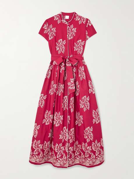 LORETTA CAPONI Camaiore belted embroidered cotton-poplin maxi dress