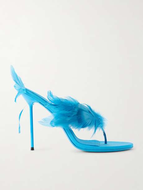 PARIS TEXAS Lidia feather-trimmed satin mules