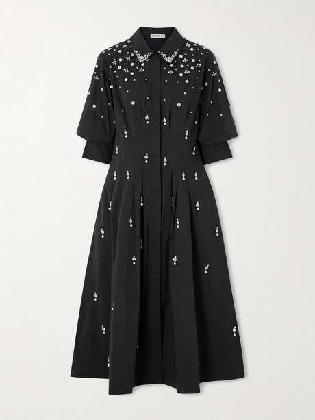 Simkhai's 'Jazz' dress is hand-sewn with sparkling crystals and faux pearls that cascade from the shoulders to the hem. Made from cotton-blend poplin, it has a classic shirt silhouette with a darted waist and a full skirt. Leave the top buttons undone for a more laid-back feel.