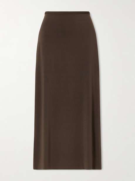 SIR.'s 'Matheo' skirt is crafted from a Naia™-blend jersey with a soft, fluid feel. Designed in a classic column silhouette, it sits low on the waist with a corded bind and falls to a floor-grazing hem.