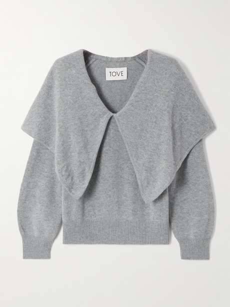 TOVE's 'Malia' sweater is cleverly designed to look like a second knit is draped over your shoulders. It's made from exceptionally soft and light cashmere and is finished with classic ribbed trims.