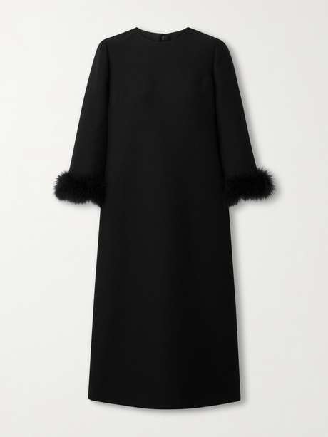 VALENTINO GARAVANI Feather-trimmed wool and silk-blend crepe midi dress