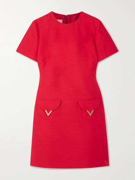 The shift silhouette lends a classic '60s feel to Valentino Garavani's mini dress. It's made from a smooth wool and silk-blend and has flap pockets embellished with V-shaped hardware – match your jewelry to the gleaming gold tone.