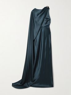 SALONIPhoenix cape-effect crystal-embellished draped satin gown