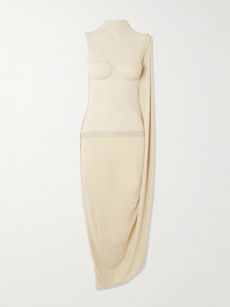 JEAN PAUL GAULTIERAsymmetric draped appliquéd mesh and stretch-jersey dress