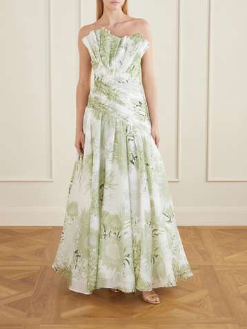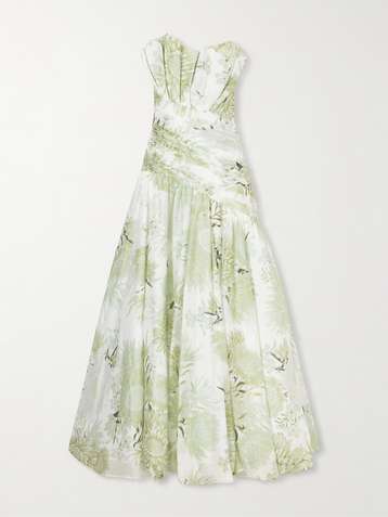 Strapless ruched floral-print cotton-poplin mini dress