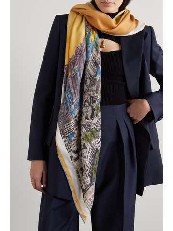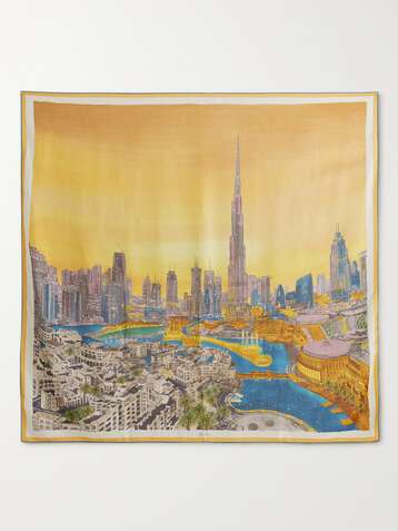 Golden Hour in Dubai printed cashmere and silk-blend scarf