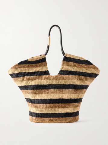Goldentime large embellished leather-trimmed striped raffia tote