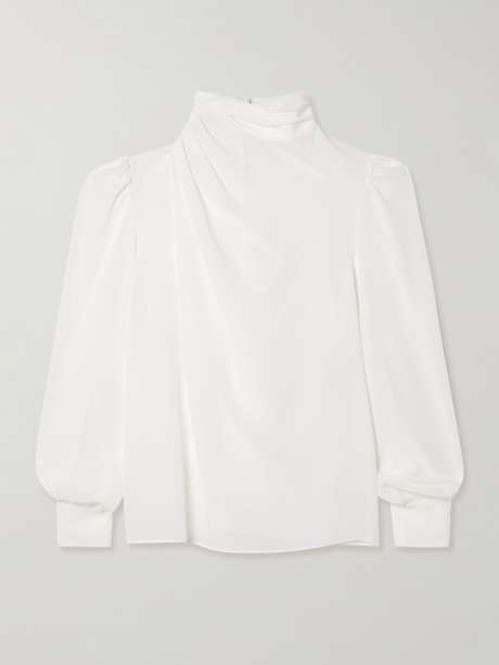 ALESSANDRA RICH Draped silk crepe de chine turtleneck blouse