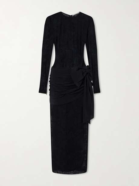 ALESSANDRA RICH Bow-detailed gathered lace and silk-crepe midi dress