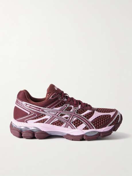 ASICS' 'GEL-CUMULUS 16' sneakers revive the 2014 icon, celebrated for its comfort on long runs. Glossy leather overlays, no-sew paneling, and mesh underlays recall the technical aesthetics of original models. Dual GEL inserts, FLUIDRIDE, and FLYTEFOAM technologies work together to deliver unparalleled cushioning underfoot.