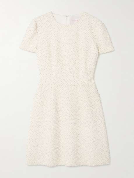 CAROLINA HERRERA Faux pearl-embellished wool-blend crepe mini dress