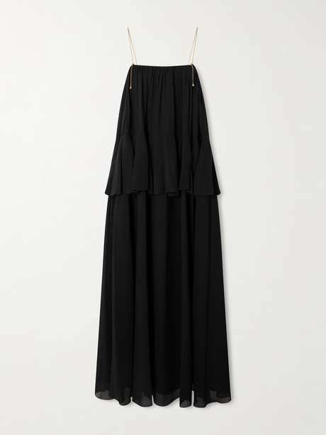 There's beauty in the way Chloé's maxi dress moves with you. It's cut from airy silk-georgette, arranged in two loose tiers and fixed to gold-tone chain shoulder straps finished with swaying drop pendants. Coordinate your jewelry with the detail.