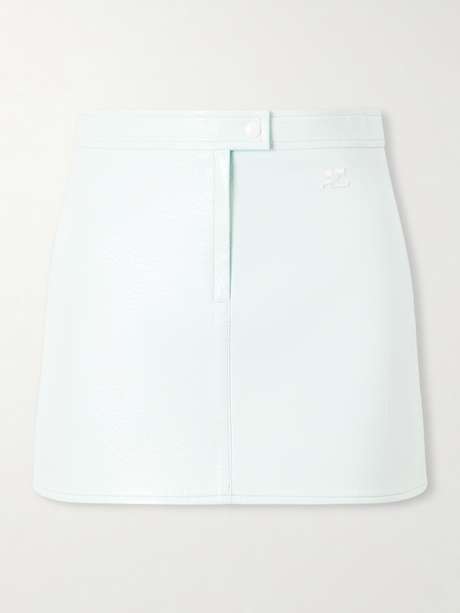COURRÈGES Appliquéd coated cotton-blend mini skirt