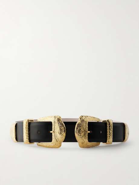 Déhanche's 'The Midas' belt is inspired by Western styles. It's been handcrafted in Italy from smooth leather and has double gold-plated buckles that are intricately engraved with an ornate swirled pattern.