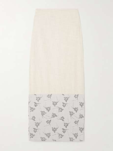DESTREE Mila woven and denim-jacquard midi skirt
