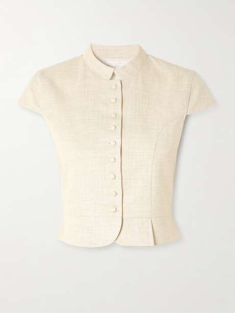 DESTREE's 'Amoako' woven top is artfully tailored with cap sleeves and a raised collar. Designed in a a neutral beige shade, it's an elegant answer to summer dressing.
