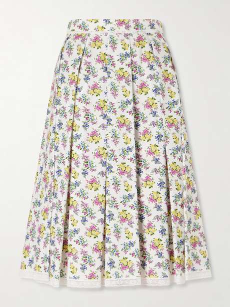 DOLCE&GABBANA Pleated floral-print cotton-poplin midi skirt