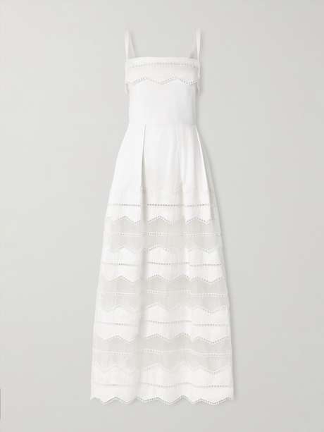 Elie Saab's midi dress is the ultimate vacation style. It's made from cotton-blend poplin with embroidered ladder detailing and sheer organza panels through the hem of the pleated skirt. Wear yours with a basket bag and sandals.