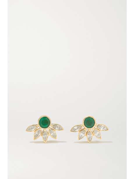 ILEANA MAKRI Grass Sunflower 18-karat gold, emerald and diamond earrings