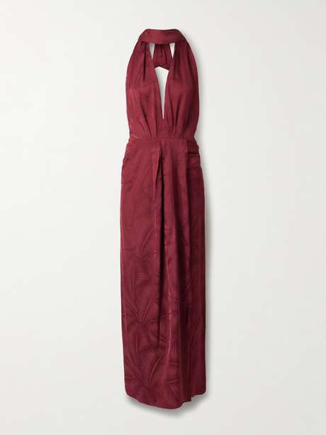 JOHANNA ORTIZ Wildly Beautiful tasseled satin-jacquard halterneck maxi dress