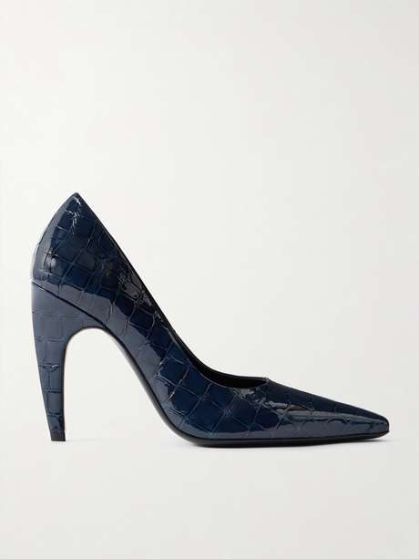 JUDE's 'Fame' pumps show why the brand has become so sought after. Crafted from croc-effect leather, they have sculptural heels, elongated square toes and low-cut vamps.