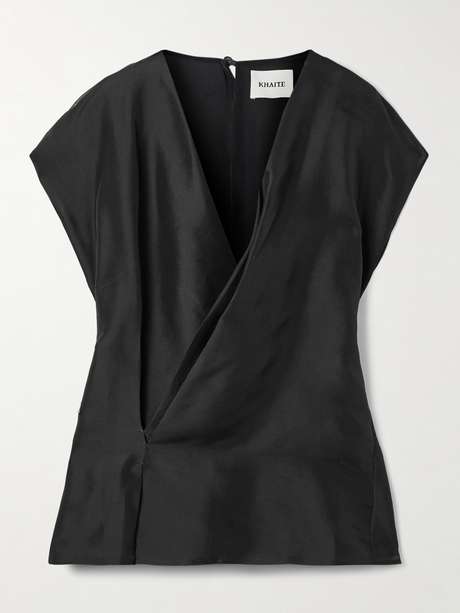 KHAITE Mer wrap-effect pleated silk-organza blouse