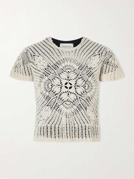 Magda Butrym's top is overlaid in crochet, which is perfectly placed to accentuate the lines of your frame. It's underpinned in black jersey, just like a classic tee.