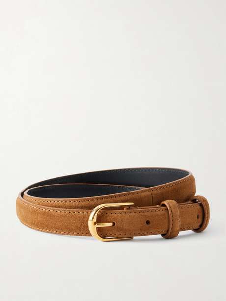 Nili Lotan's 'Jane' belt is crafted from supple suede and finished with a classic gold-toned buckle. Wear yours over jeans or tailored pants.