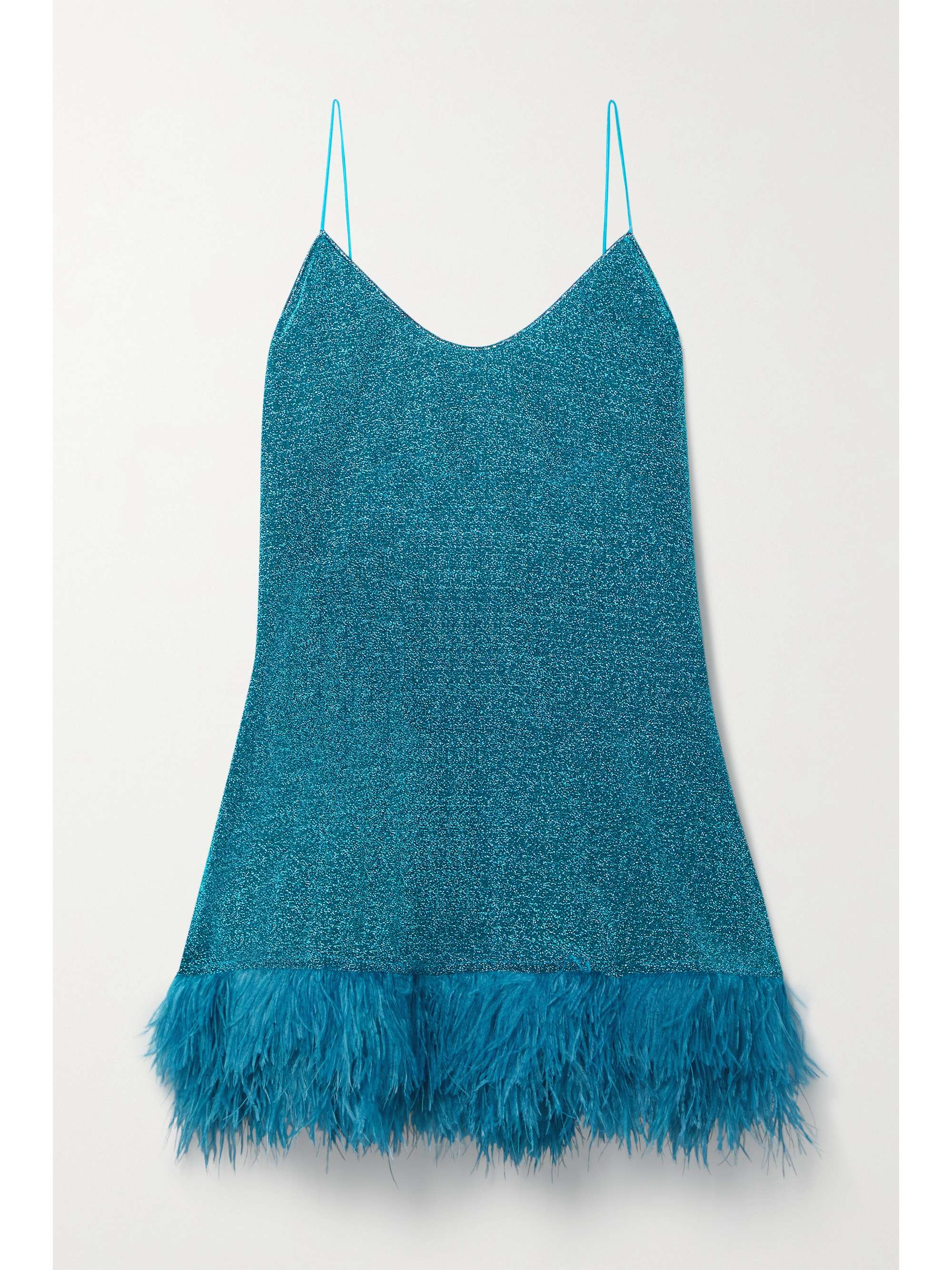 OSÉREE Lumière feather-trimmed stretch-Lurex mini dress