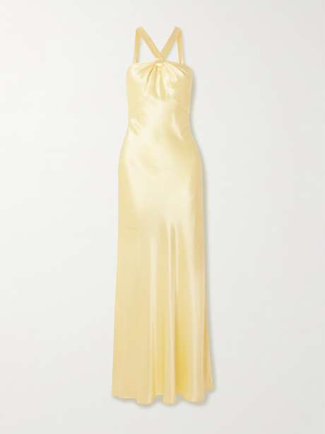 RIXO's 'Losanna' maxi dress is part of the label's black tie collection, designed for special occasions and made using the finest fabrics. It's cut from glossy satin to drape along your figure and framed with a sash halterneck. Enhance the 'Buttercup' shade with gold earrings.