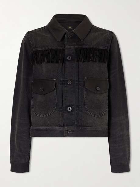 RRL’s ‘Emerson’ jacket reworks classic trucker styles with signature Americana flair. Made from denim, it’s detailed with two flap pockets, leather trims and fringed accents. Wear yours over a floaty dress for a festival-ready look.